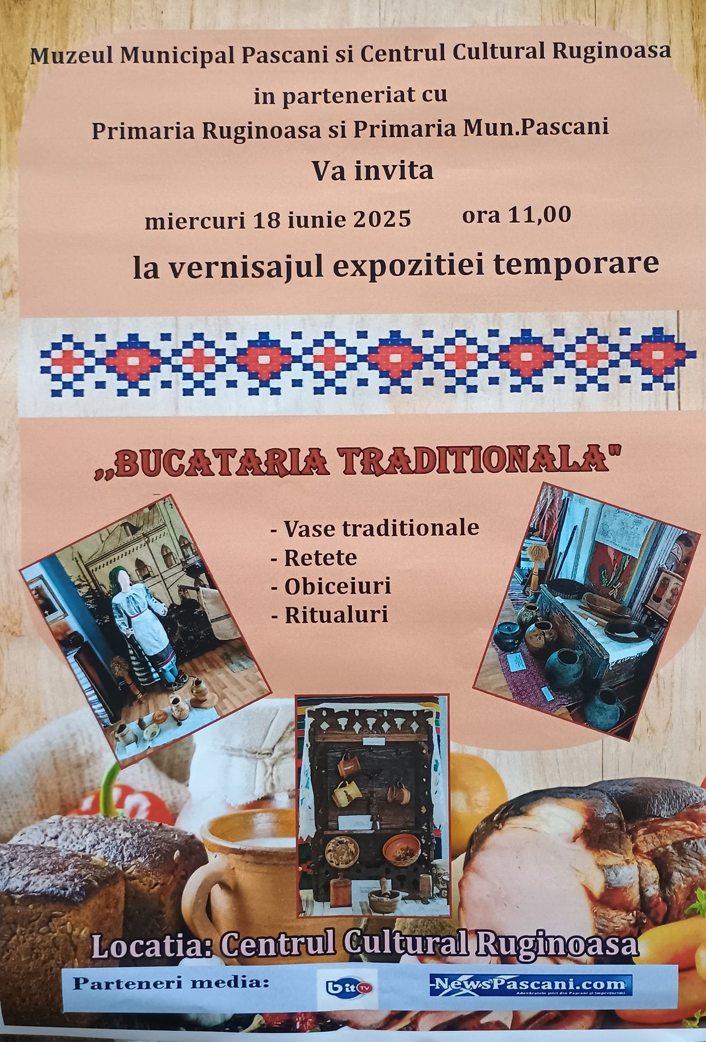 Evenimentul va avea loc la Centrul Cultural Ruginoasa iar vizitatorii vor putea descoperi vase tradiționale de lut, lemn și ceramică, obiecte de uz casnic și unelte folosite la prepararea mâncărurilor în trecut.
