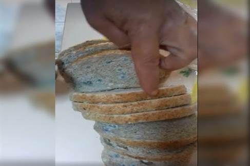 Barbatul a postat un clip video in care arata produsul de panificatie cumparat. Fiecare felie era plina cu mucegai.