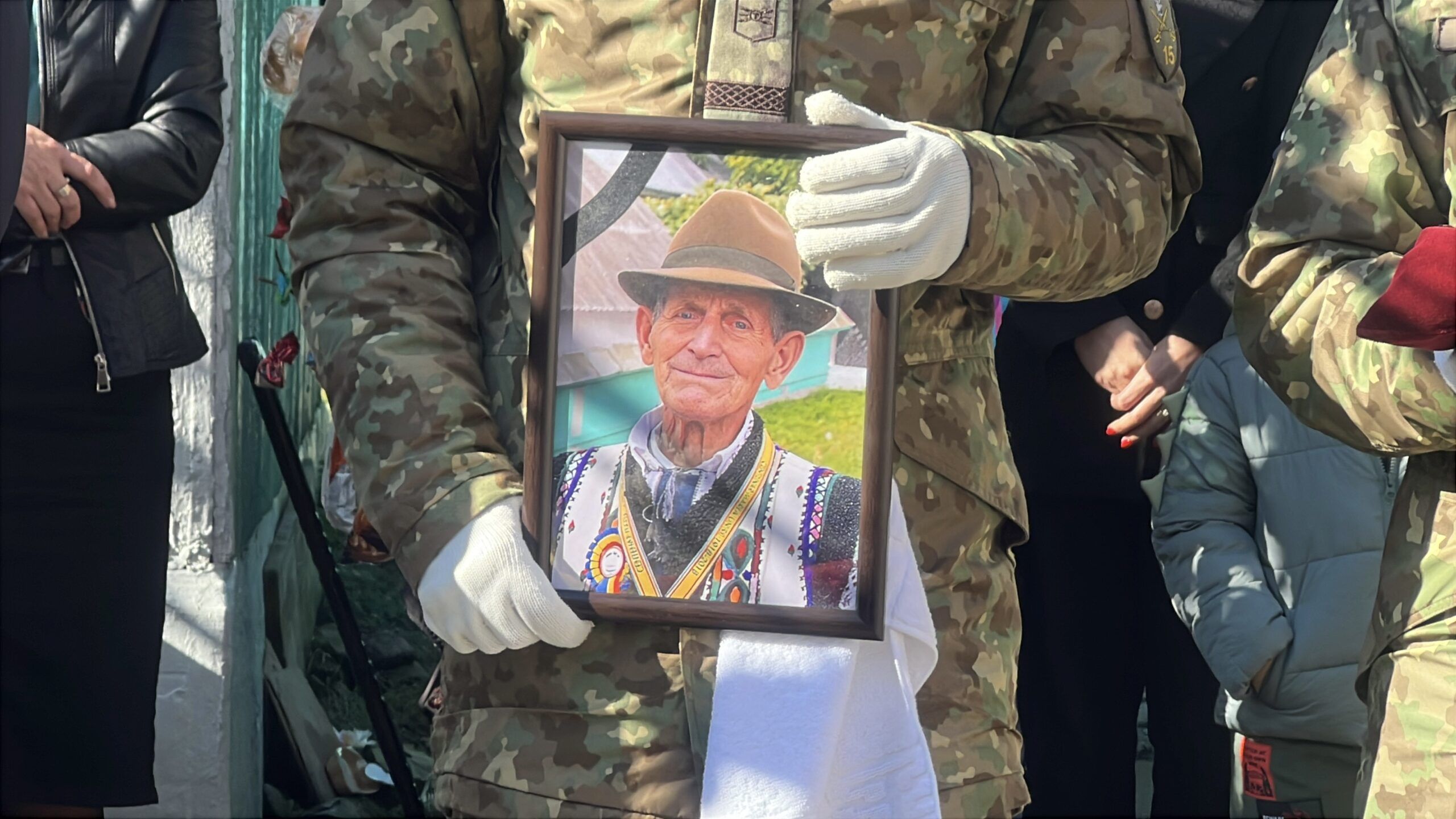 Oamenii s-au adunat în număr mare în curtea veteranului de război, care împlinise în primăvara acestui an 104 ani. Un sobor de preoți a rostit slujba de rămas bun.