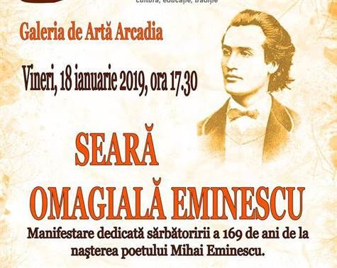 Poetul national al Romaniei, Mihai Eminescu, a fost omagiat vineri seara, in Galeria de Arta Arcadia, de la Casa de Cultura Mihail Sadoveanu din municipiul Pascani. Pentru a sarbatori cei 169 de ani de la nasterea marelui scriitor, institutia publica in parteneriat cu Liceul Teoretic „Miron Costin” a organizat o manifestare complexa moderata de profesorul Ionut Haratu.