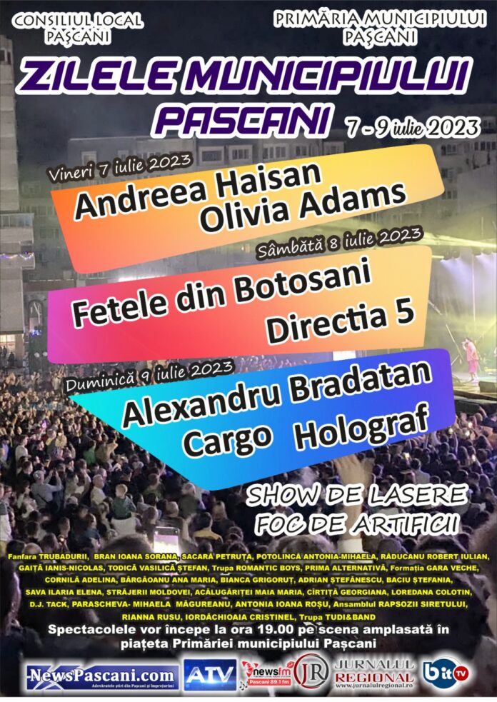 Menționăm ca in acest an sărbătoarea Pașcaniului este programata in perioada 07- 09 iulie. Municipalitatea a publicat si afișul evenimentului cu artiștii care vor urca pe scena in cele trei zile de concerte.