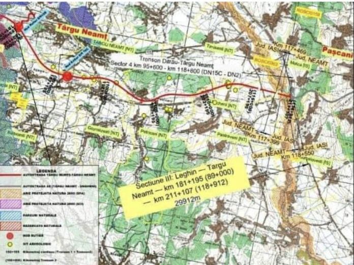 Din documentaţia publicată în sistemul naţional de achiziţii publice rezultă că 672 metri din această secţiune a autostrăzii vor fi construiţi pe teritoriul judeţului Iaşi, fără a include şi podul peste râul Moldova (534 metri), râu care delimitează judeţele Neamţ şi Iaşi.