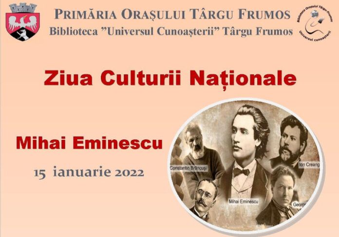 Ziua de naștere a marelui poet, Mihai Eminescu, va fi marcată și la Târgu Frumos, printr-o serie de evenimente ce vor avea loc la sediul bibliotecii „Universul Cunoașterii”. Vineri, 14 ianuarie, de la ora 14:00, vor avea loc expoziții de carte, filme documentare, momente artistice susținute de elevii de la Clubul Copiilor din oraș și expoziție de desene.