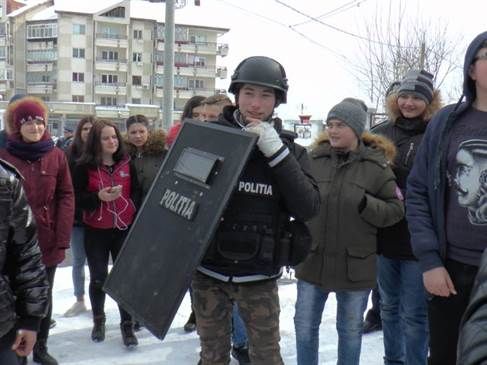 La manifestare au venit zeci de elevi de la scolile din oras. S-au oprit prima data in fata celor de la Serviciul de Actiuni Speciale, care le-au aratat o parte din echipamentul cu care intervin. Liceenii s-au imbracat si ei pentru a simti, macar o mica parte, din ceea ce inseamna sa fii politist.