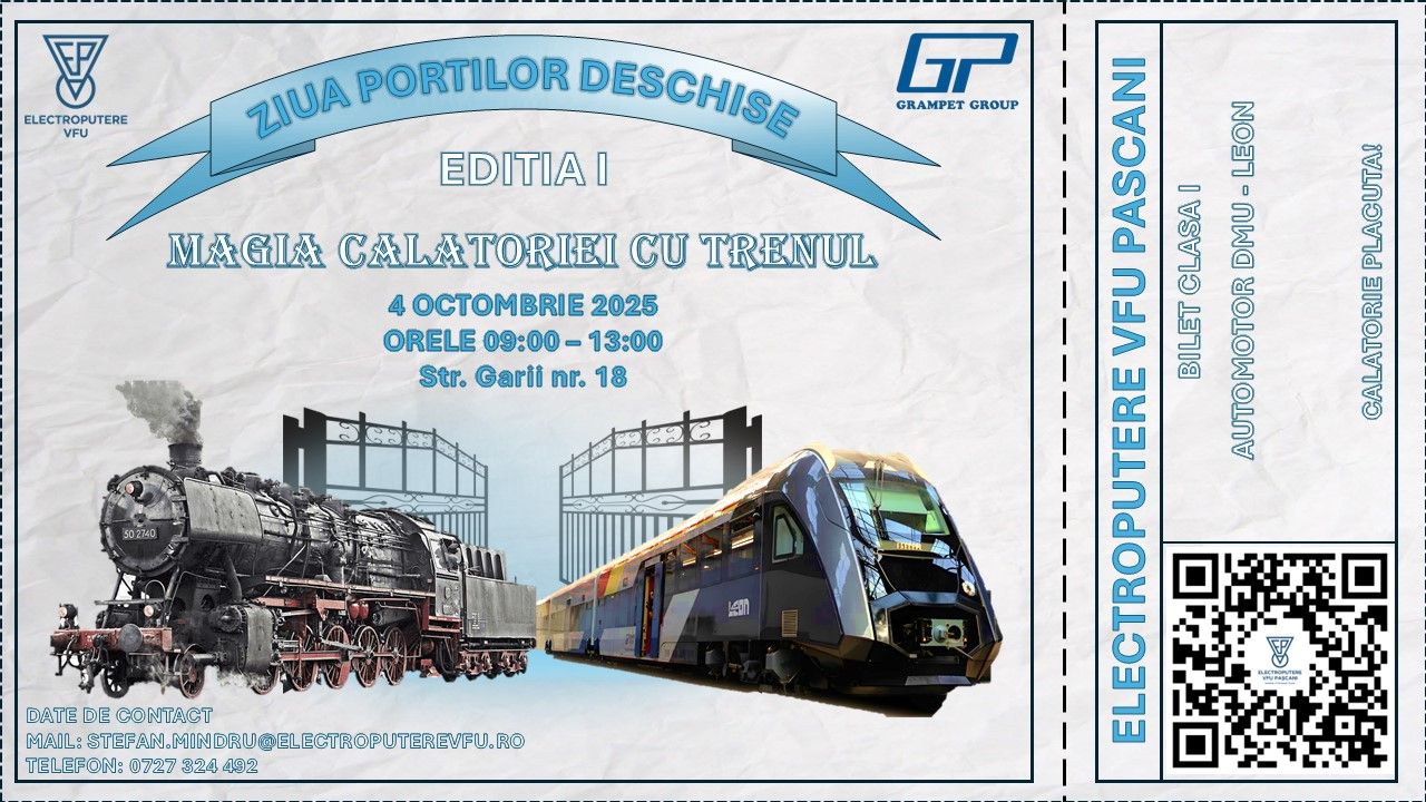 Dacă vreți să vedeți cum se fabrică trenuri și se repară vagoane, la începutul lunii octombrie a.c. aveți o astfel de ocazie. Electroputere VFU Pașcani, fosta fabrică Remar SA, vă invită la „Ziua Porților Deschise”, în data de 4 octombrie 2025, între orele 09:00 – 13:00.